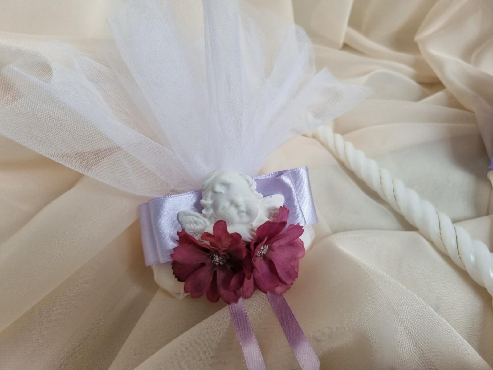 Комплект за кръщене "Лилав хризантема" съдържа: